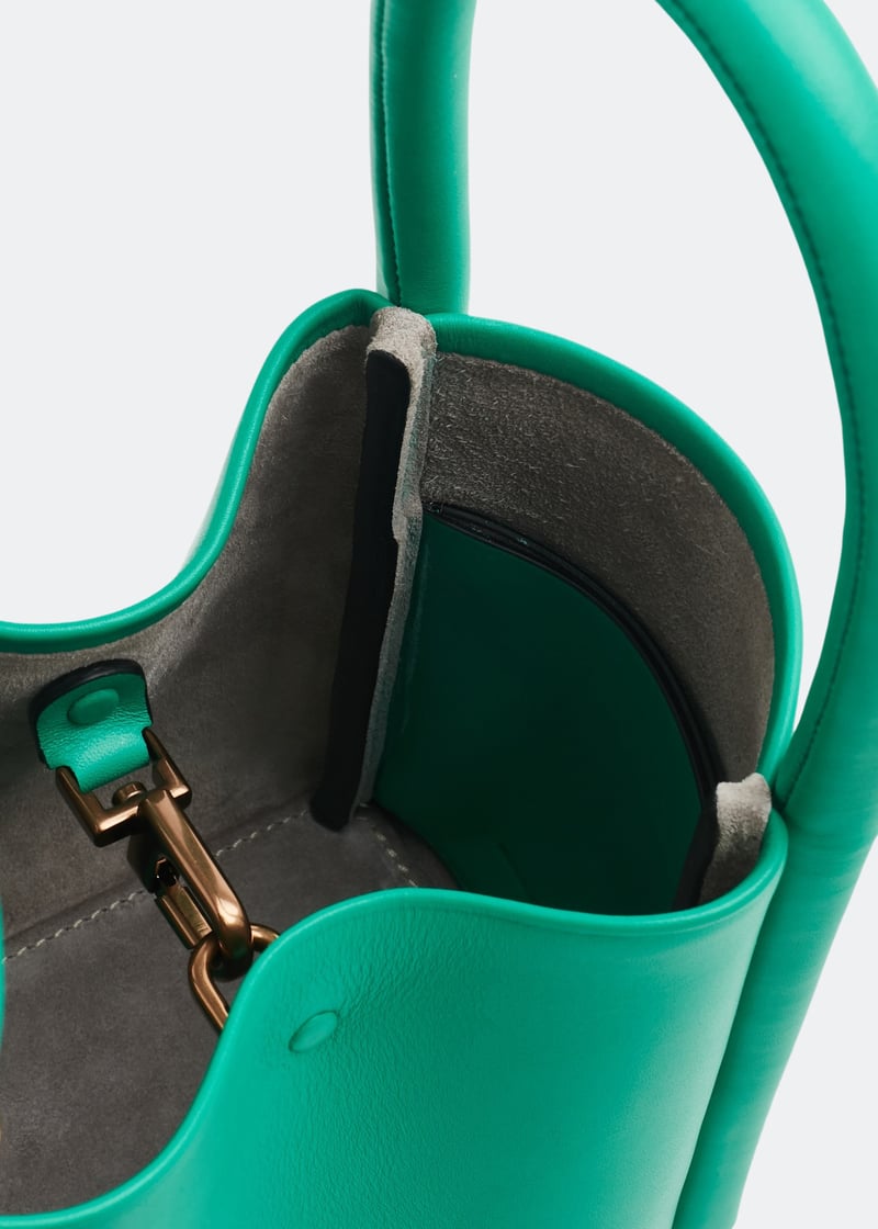 تبحثين عن حقيبة بتفاصيل فنية راقية؟ إليكِ حقيبة لوتس 12 من بوي التي تتميز بحواف كبيرة أنبوبية الشكل مع قفل معدني دوار للإغلاق ومقبضين بنمط متداخل وجيب داخلي وحزام كتف جلدي قابل للتعديل والفصل.