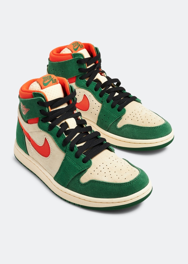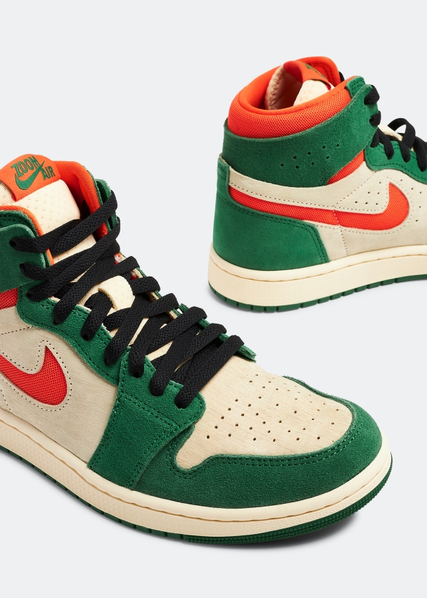تُقدم لكِ نايك سنيكرز إير جوردان 1 هاي زوم سي إم إف تي 2 بالوان "باين جرين" ليُكمل أناقة إطلالاتكِ الصيفية. يأتي مصنوعاً من النوبوك ويتميز بطبقات من الشمواه الناعم بلونين مع ثقوب على الجزء العلوي للتهوية، رقبة مبطنة، رباط للإغلاق ونعل مطاطي متين لراحة تدوم طويلاً.