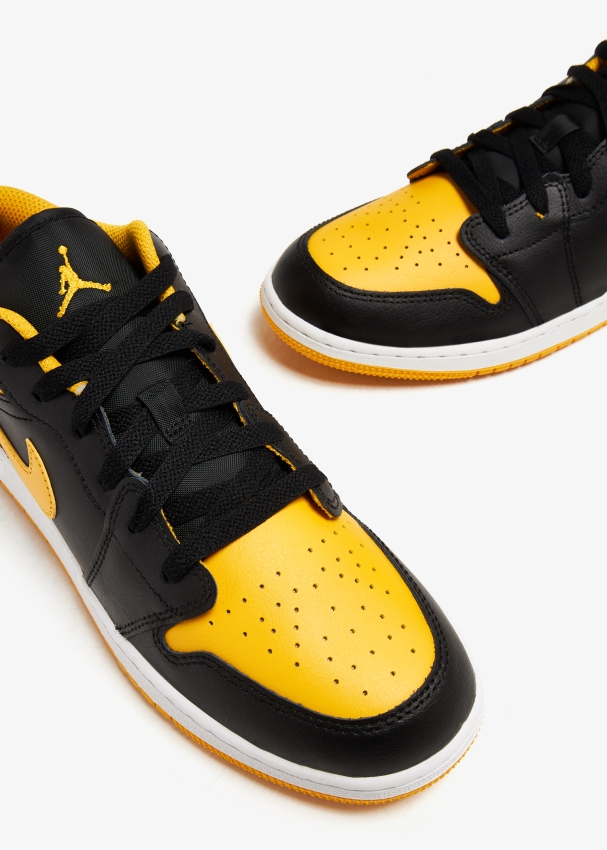 تُقدم نايك سنيكرز إير جوردان 1 لو بتصميم كلاسيكي وأنيق باللون الأصفر المائل إلى البني ومستوحى من النمط الأصلي من عام 1985. صُمم هذا السنيكرز الكاجوال الشهير لدى الدار مع وحدة داخلية بتقنية إير سول لتوسيد خفيف الوزن وجزء علوي من الجلد الفاخر ونعل مطاطي مع بطانة جوراب ناعمة.