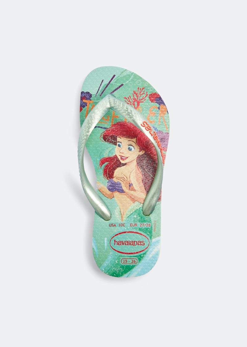 اجعلوا فتاتكم تتألق كالأميرات على الشاطئ مع هذا الفليب فلوب من هافاياناز. يتميز بأحزمة كلاسيكية بنمط ثونغ مع نعل مطاطي بطبعة متعددة الألوان.