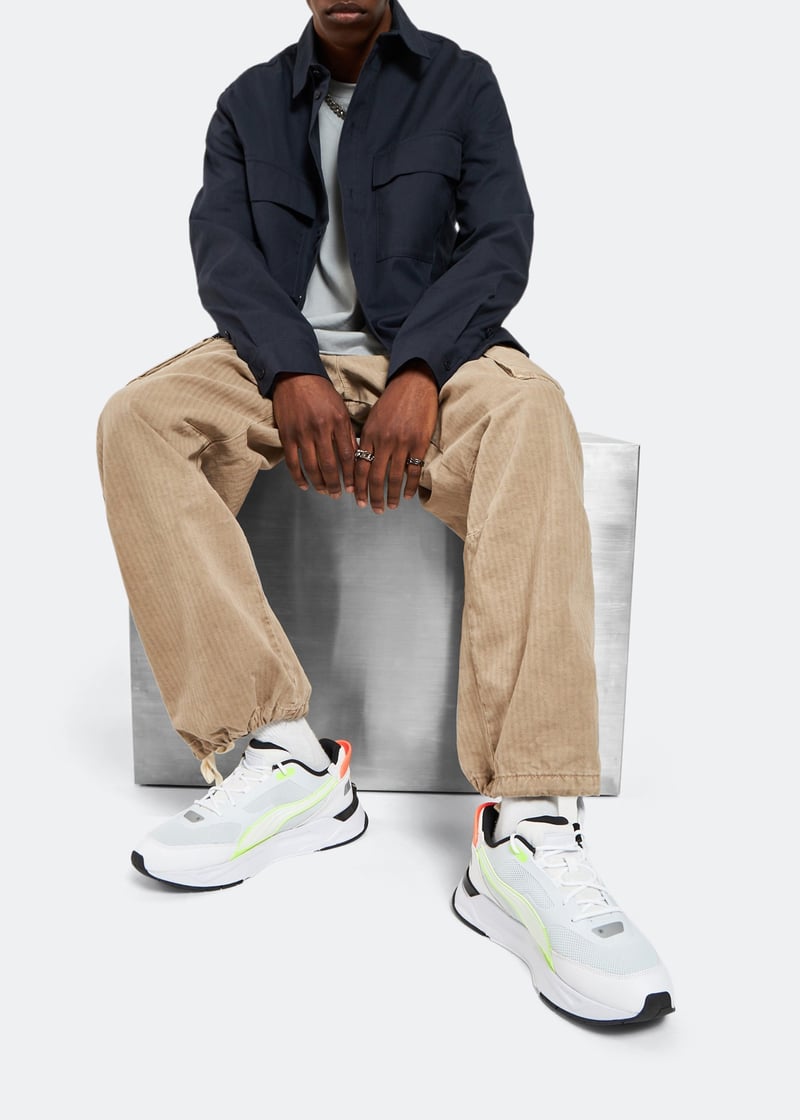 انعم بالراحة، الخفة والثبات مع سنيكرز ميراج سبورت تيك ليزر تاغ المأخوذ من أرشيفات التسعينات والمحدّث من بوما. مستوحى من ثقافة الدي جي ويأتي بتصميم يجمع بين الريترو والمستقبل يستكشف الخطوط المعاصرة واللمسات الجريئة. يتميز بجزء علوي ناعم وعناصر بلون النيون لمزيد من الأناقة.