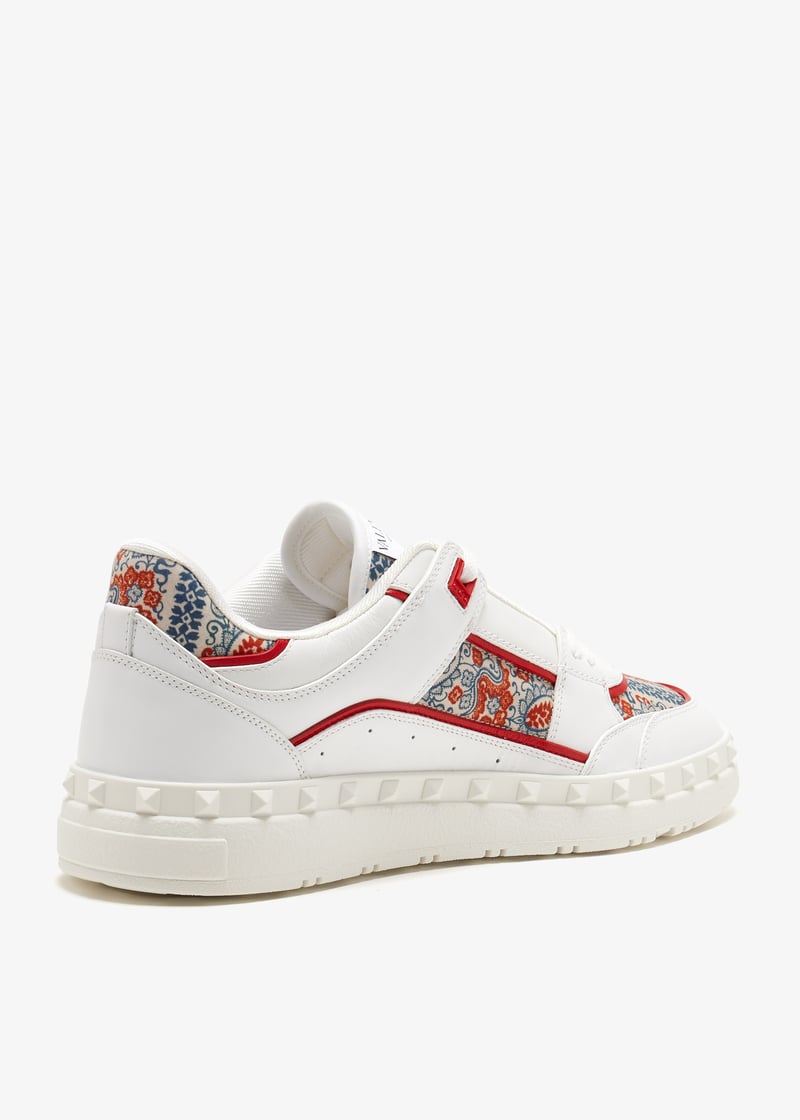 خزانتك للموسم لن تكتمل بدون سنيكرز فريدوتس من فالنتينو غارافاني. يأتي ببنية منخفضة من جلد العجل والجاكار المنقوش، مع طبعة شعار العلامة على قاعدة الكعب واللسان العلوي مع نعل مطاطي بحواف مزدانة بدبابيس مطاطية.